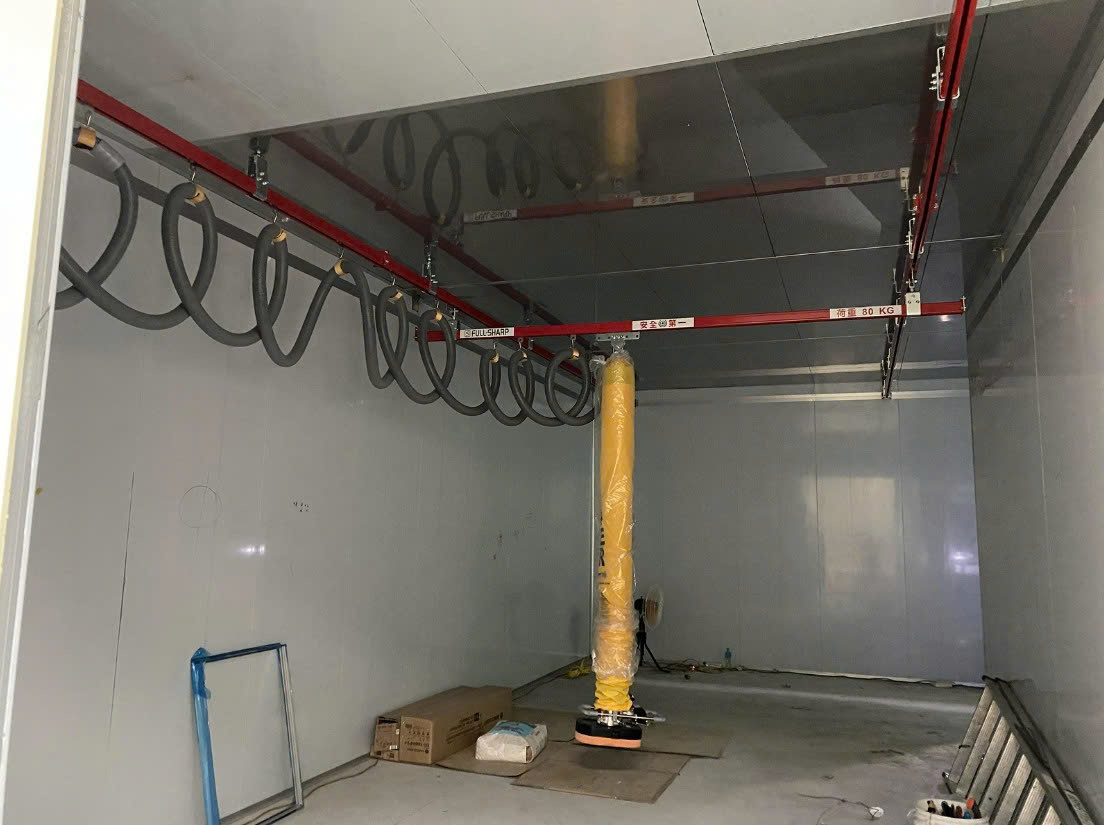 Hệ thống cầu trục xoay khí nén với cột inox 304 chống ăn mòn cao cấp, tích hợp tool kẹp bao đường chuyên dụng - đáp ứng tiêu chuẩn vệ sinh an toàn thực phẩm nghiêm ngặt. Cột inox sáng bóng, dễ vệ sinh, không gỉ sét, phù hợp môi trường ẩm ướt. Tool kẹp thiế