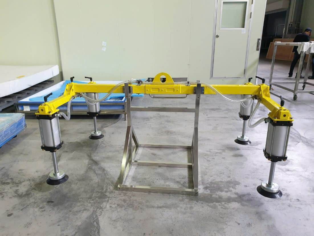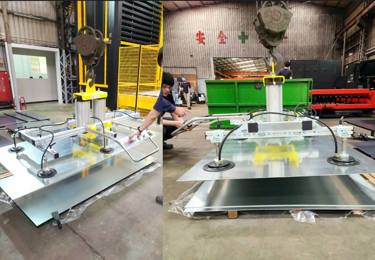 Không cần lắp đặt, móc treo của mặt hút chân không có thể kết nối trực tiếp với móc cẩu của xe nâng/trục cẩu.